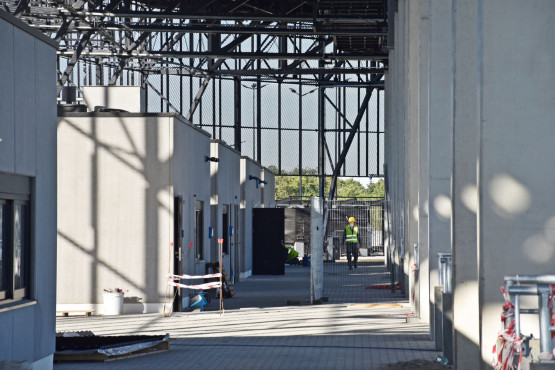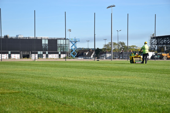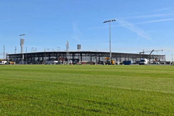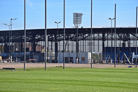 Rozległy plac budowy obejmuje jednak nie tylko trybuny przy głównej murawie. Dużo dzieje się również w ich otoczeniu, m.in. na boiskach treningowych.