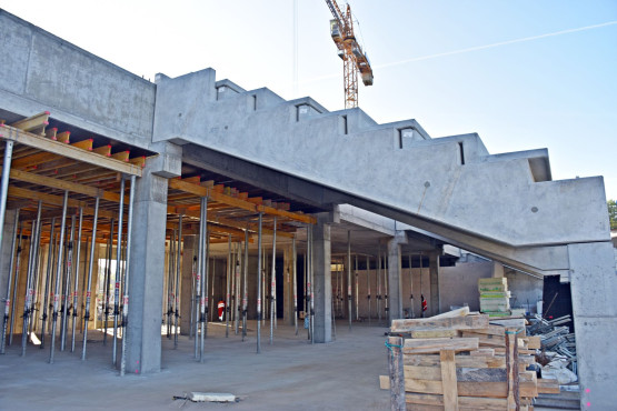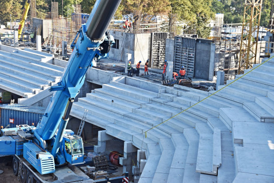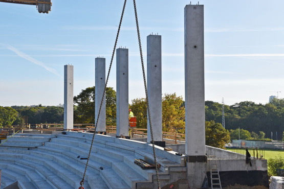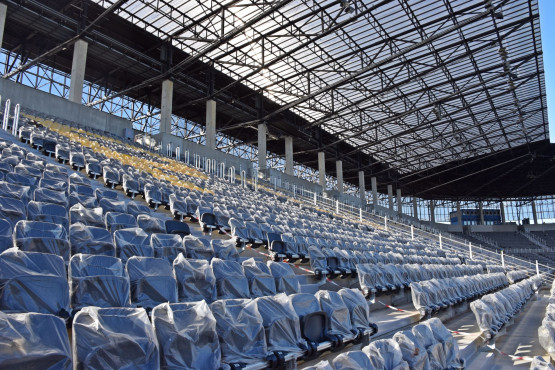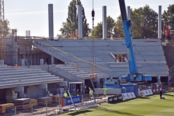 – Przy łączniku trybuny wschodniej i południowej, trwa montaż prefabrykatów, na których spoczną płyty audytoryjne. Kontynuowane są prace żelbetowe. Na łuku zamontowanych zostało już 5 słupów prefabrykowanych, które będą częścią konstrukcji zadaszenia trybuny – relacjonuje Piotr Zieliński, rzecznik prasowy spółki Szczecińskie Inwestycje Miejskie.
