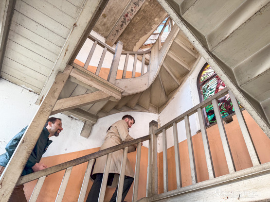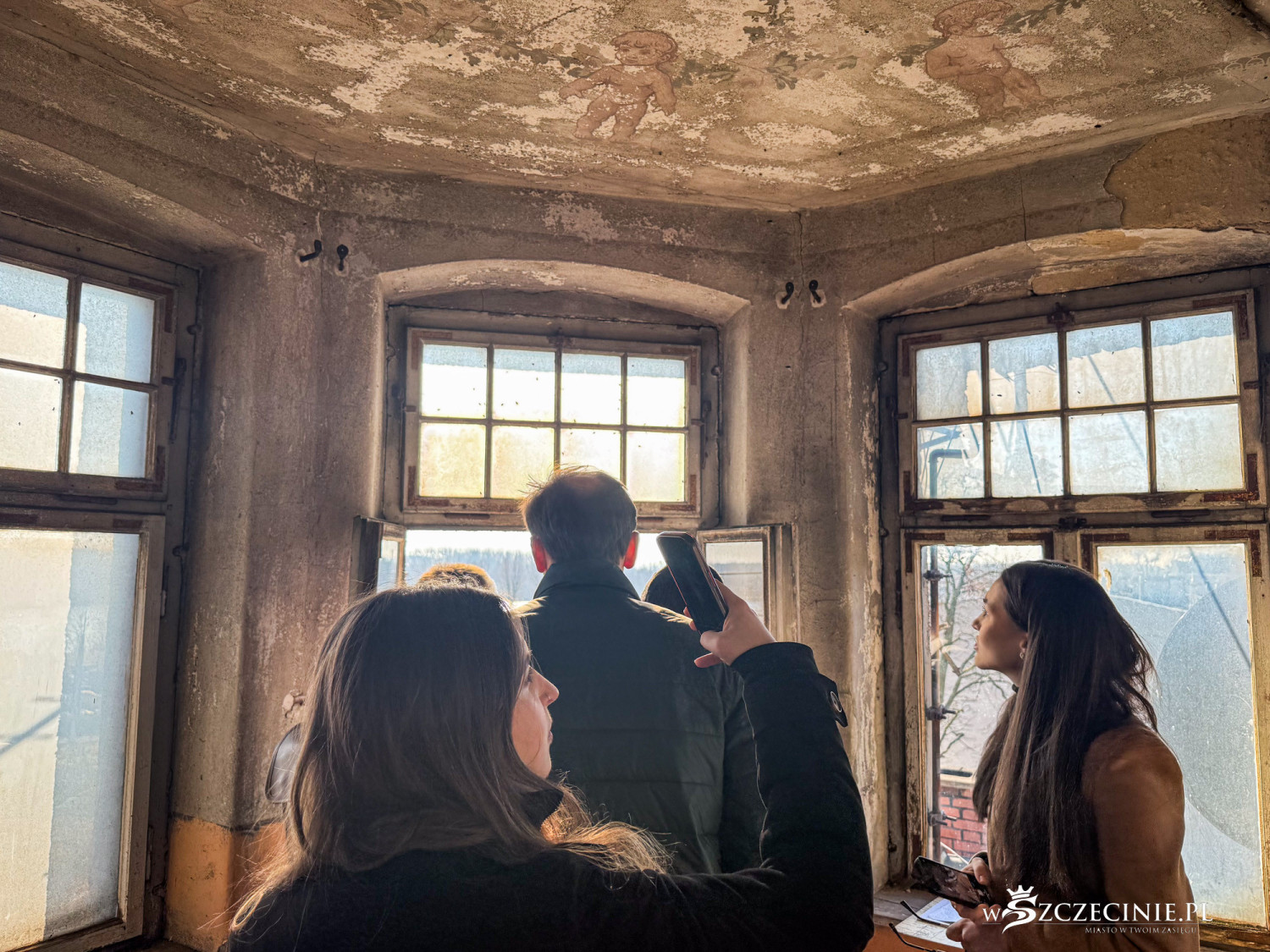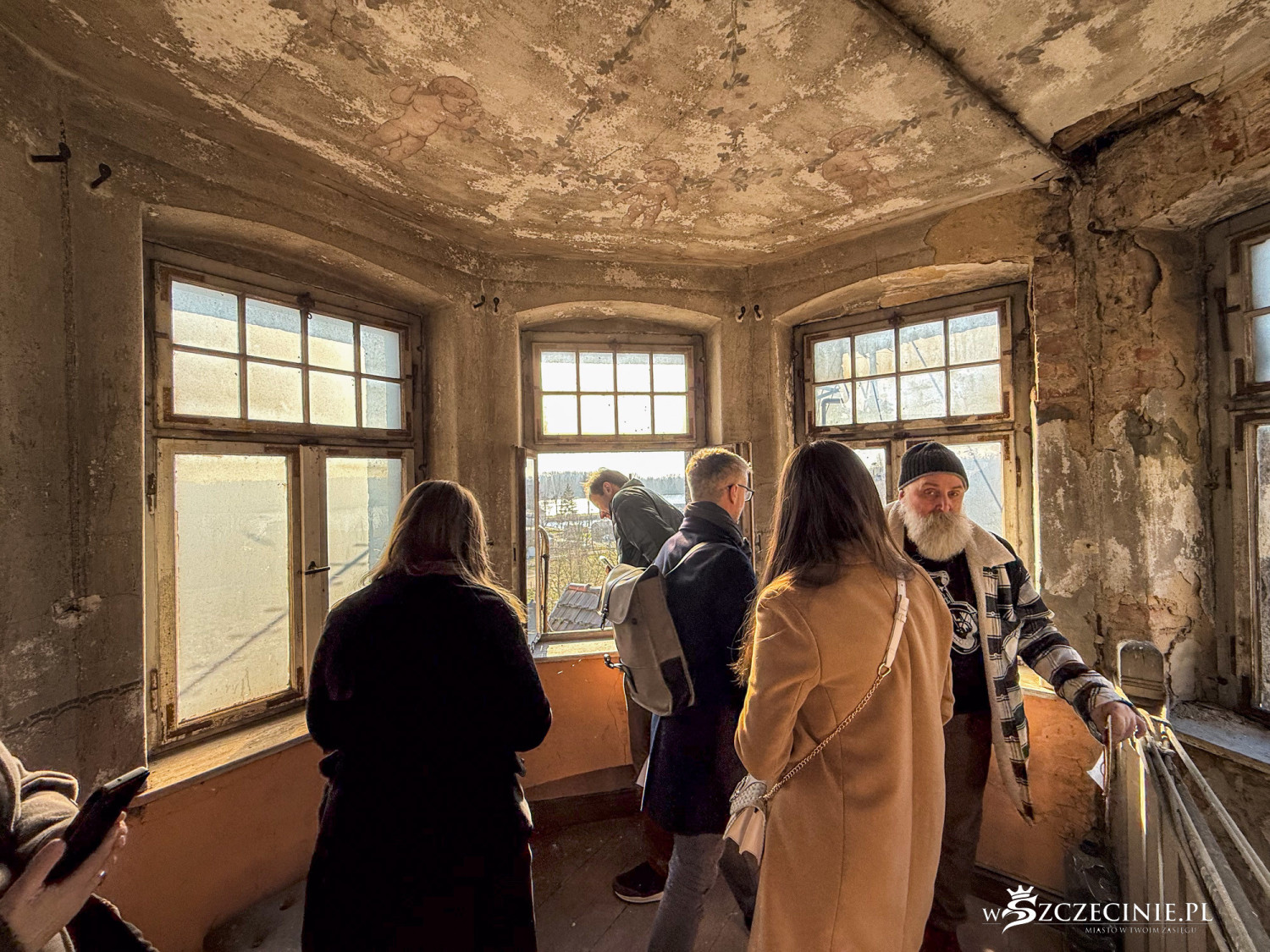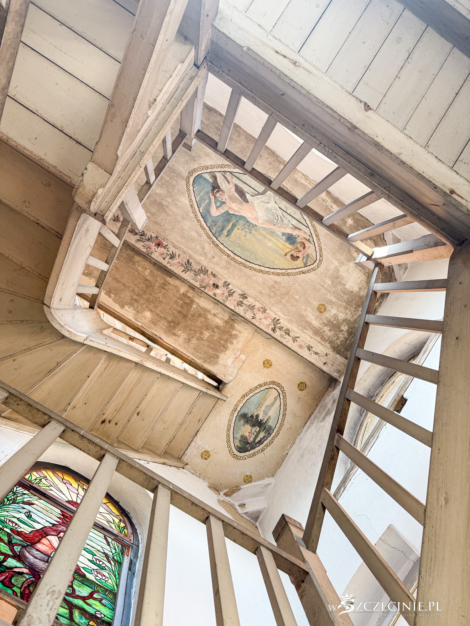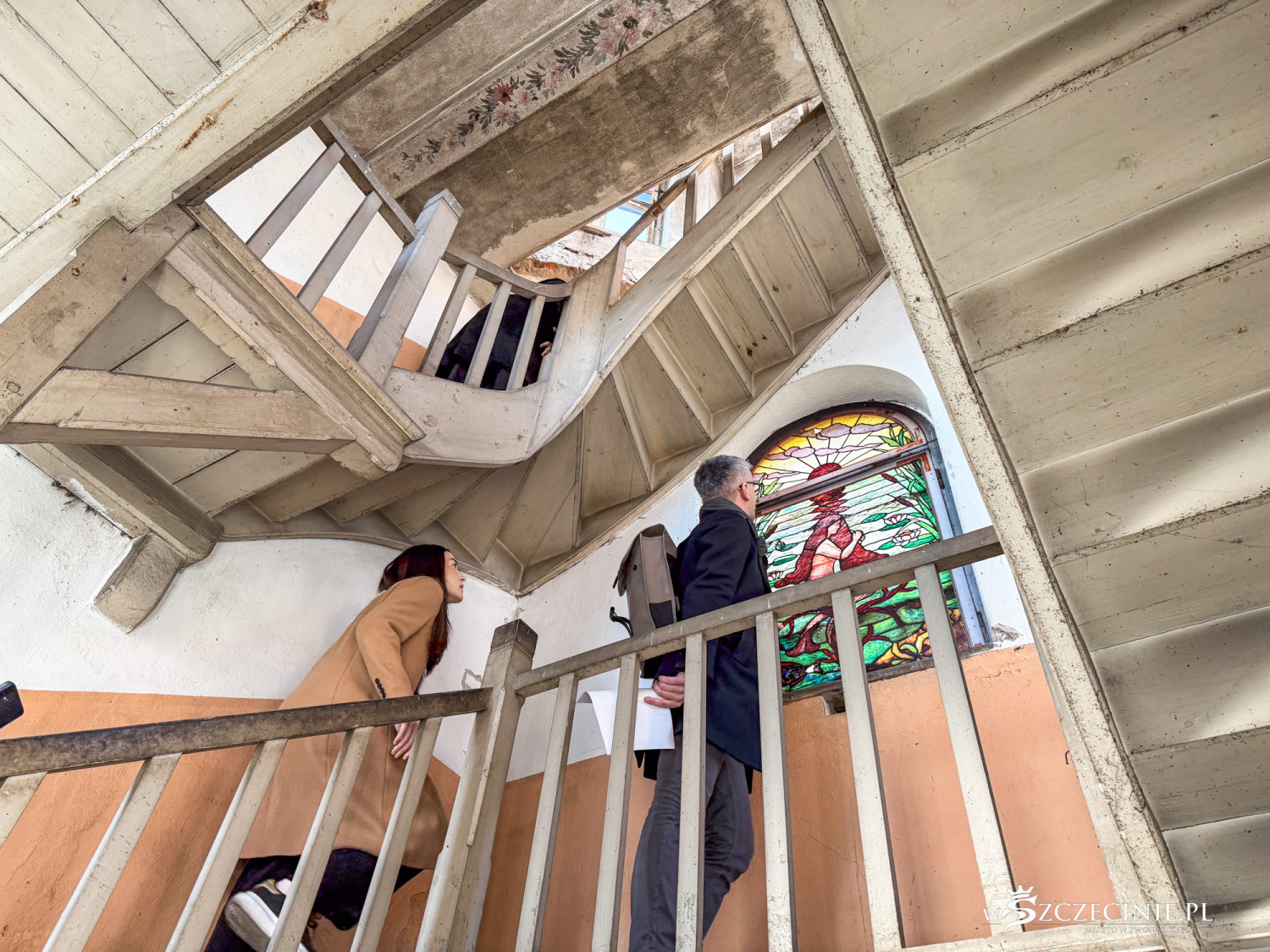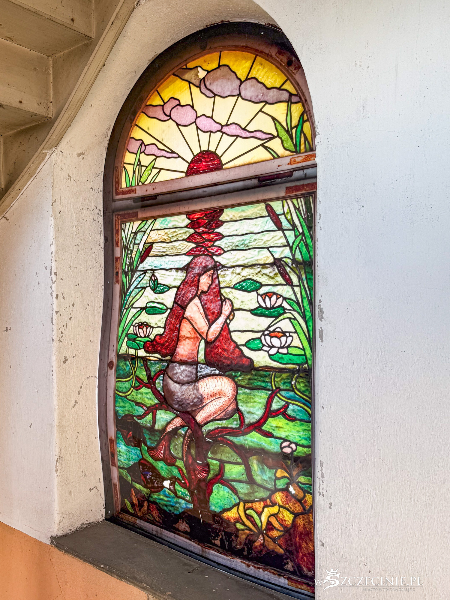 – Prawdziwe skarby kryją się we wnętrzu. Klatka schodowa niemal w stu procentach zachowała dawny wystrój malarski z malaturami na podniebiu i na stropie wieży. Unikatowe są oryginalne witraże z czeszącą się syrenką i z dekoracją ornamentalną – opowiadał miejski konserwator zabytków.