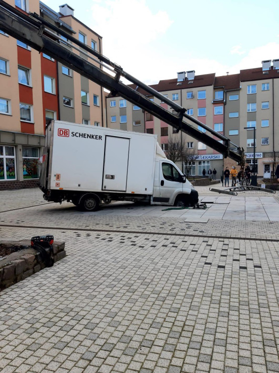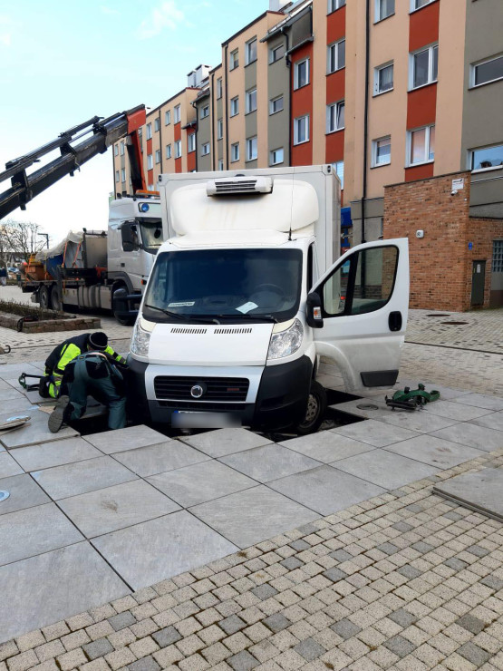 Samochód z fontanny wyciągał specjalny dźwig. Na miejscu była również policja, która ukarała kierowcę mandatem.