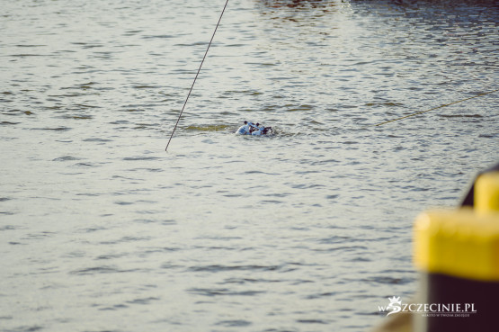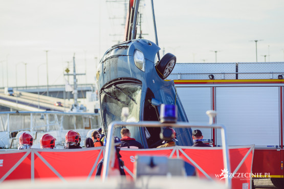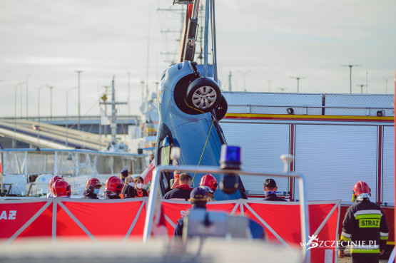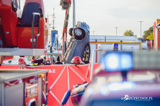 Nurkowie potwierdzają, że w aucie na pewno znajduje się jedna osoba. Samochód leży na dachu.