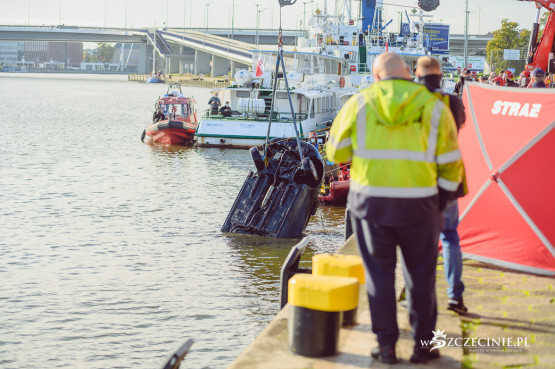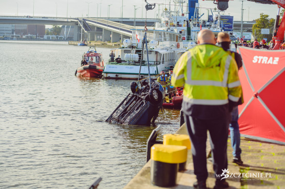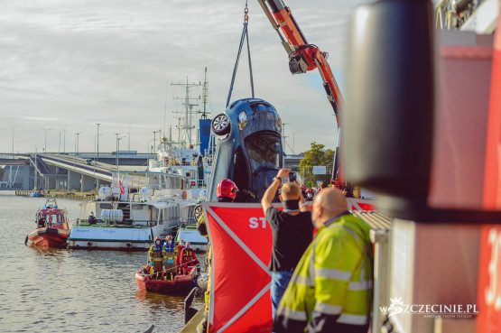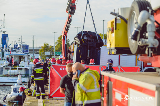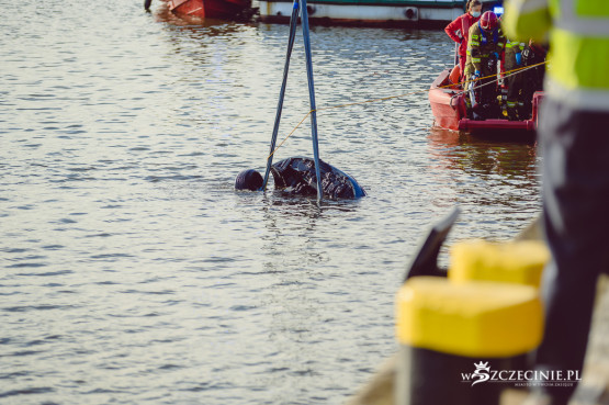 Akcja już się zakończyła. Auto zostało wyciągnięte z wody. W środku znajdowało się ciało.