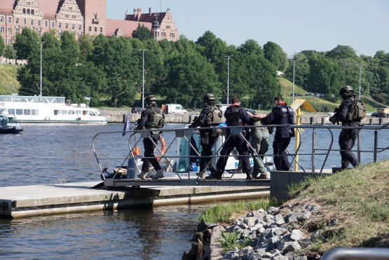 Jak miałaby wyglądać pogoń za złoczyńcami? Pościg za sprawcami drogą wodną odbywa się najpierw na terenie Niemiec, a następnie na akwenach województwa zachodniopomorskiego. Z ustaleń niemieckich funkcjonariuszy wynika, że przestępcy mogą być uzbrojeni. Po przekroczeniu przez sprawców polskiej granicy wodnej Patrol Straży Granicznej rozpoczyna pościg za przestępcami, którzy z Zalewu Szczecińskiego wpływają na obszar wodny miasta Szczecin. Do działań pościgowych włączają się funkcjonariusze z Samodzielnego Pododdziału Kontrterrorystycznego Policji w Szczecinie i szczecińscy policjanci. Łodzie policyjne blokują wejście na Przekop Mieleński, kierując przestępców w stronę Trasy Zamkowej, którzy rozbijają jacht na brzegu wyspy Bielawa i pieszo kontynuują ucieczkę na lądzie. Tam zostają obezwładnieni i zatrzymani przez policjantów z Samodzielnego Pododdziału Kontrterrorystycznego Policji w Szczecinie, a następnie przewiezieni w rejon nabrzeża Trasy Zamkowej. Z rozbitego jachtu do wody wydostaje się paliwo, do działań włączona zostaje załoga PSP w Szczecinie, która neutralizuje rozlaną substancję. Działania pościgowe dobiegają końca, nikt z osób postronnych nie ucierpiał, sprawcy zostali zatrzymani.