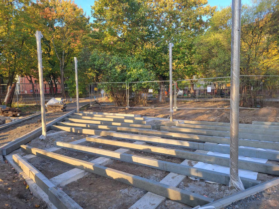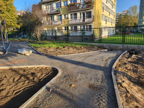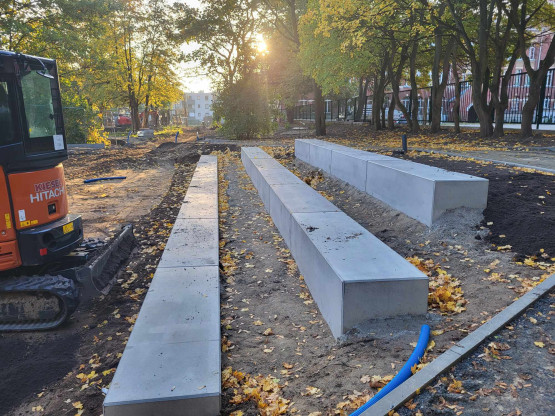 Pierwsze elementy wyposażenia placu zabaw i mała architektura będą montowane w najbliższych tygodniach. Planowane jest w tym czasie wykonanie nawierzchni ścieżek oraz instalowanie oświetlenia.