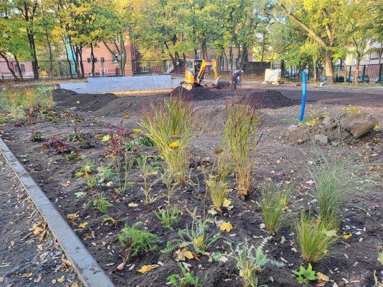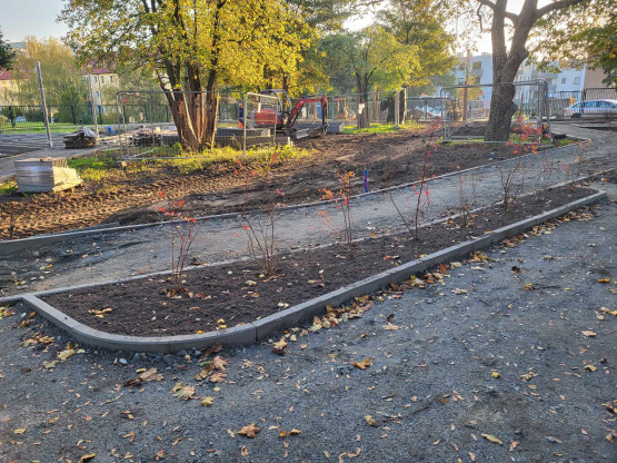 Rozpoczęło się również sadzenie rośli i zakładanie trawników. Wokół istniejących drzew dosadzonych zostanie bowiem prawie 500 krzewów oraz tysiące bylin, krzewinek, cebul, traw i pnączy.