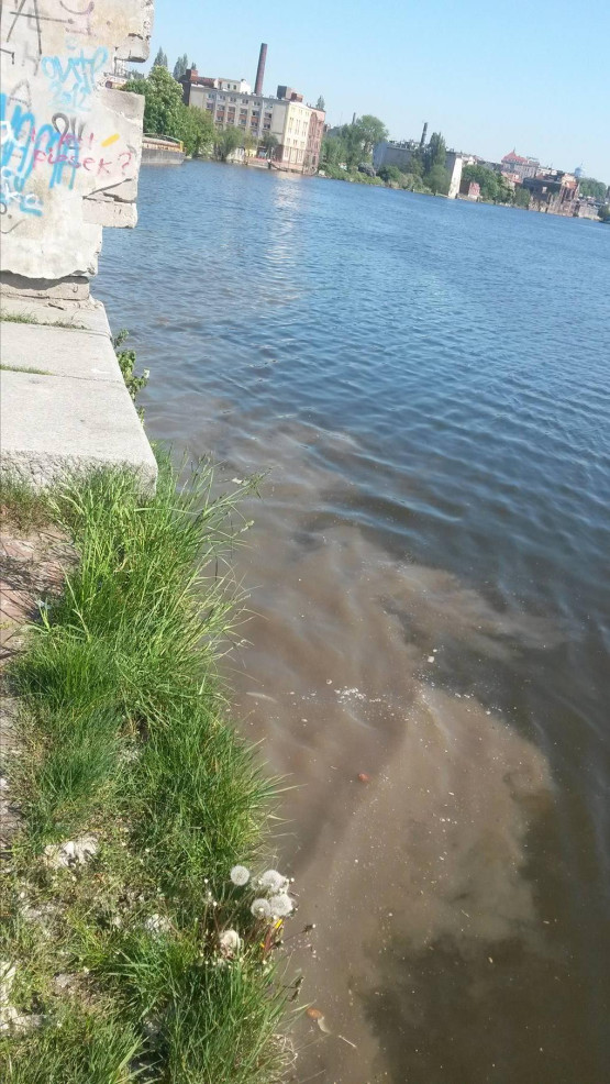 To, że doszło do zanieczyszczenia Odry wyraźnie widać na zdjęciach wykonanych przez naszego czytelnika. Dostrzec można na nich, że woda tuż przy brzegu jest dużo ciemniejsza. Po jej powierzchni pływają kawałki papieru toaletowego.