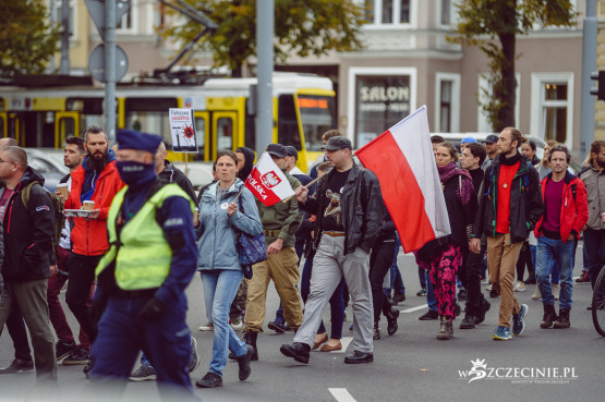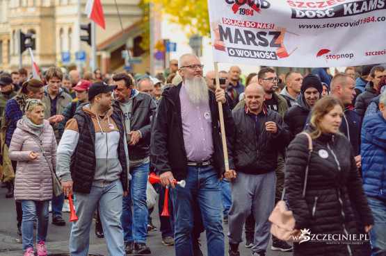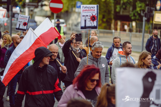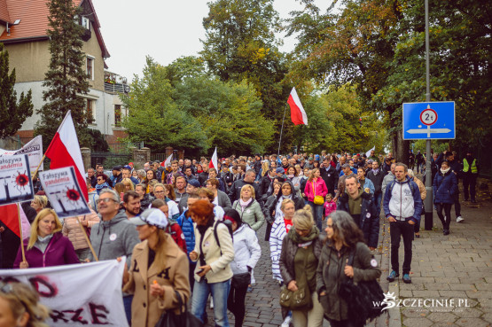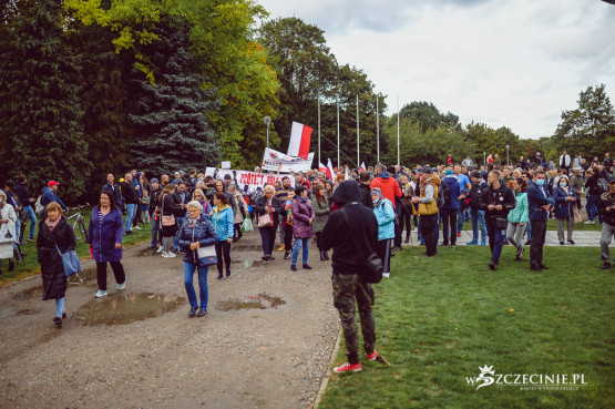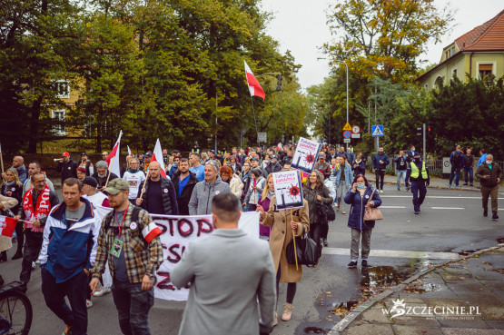 Coraz więcej uczestników. To już trzeci protest antycovidowców w Szczecinie