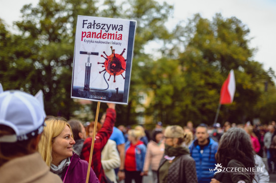 Organizatorzy protestu w rozmowie z dziennikarzami jasno artykułowali swój brak wiary w pandemię.
