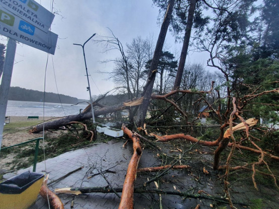 Straż Pożarna w Szczecinie poinformowała, że do godziny 7:30 odnotowano blisko 1500 zdarzeń atmosferycznych. Najwięcej było powalonych drzew oraz uszkodzonych dachów. W samym Szczecinie podjęto już blisko 110 interwencji, ale bez przerwy służby odnotowują kolejne zgłoszenia. Najwięcej spraw dotyczy podejmowania z dróg i jezdni wiatrołomów, które uniemożliwiają przejazd samochodom i komunikacji miejskiej. Możliwe są poważne opóźnienia na niektórych liniach.