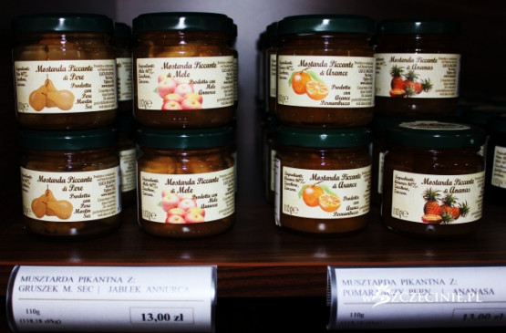 Z pewnością dla wielu jednym z nietypowych artykułów, które można znaleźć we włoskim sklepie na Pogodnie, będą musztardy owocowe. Ich producentem jest firma Dalpian, która od początku lat 80-tych XX wieku pośrodku Parco del Beigua, figurującego na Liście światowego dziedzictwa UNESCO, uprawia owoce ogrodowe i leśne. - Musztardy te to kawałki owoców zatopione w swoim soku, z dodatkiem imbiru. Świetnie nadają się do mięs. Mamy pikantną z ananasa, z jabłek, z pomarańczy i gruszek. - wyjaśnia Włoch.