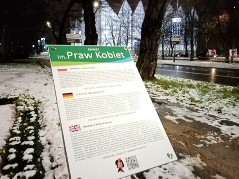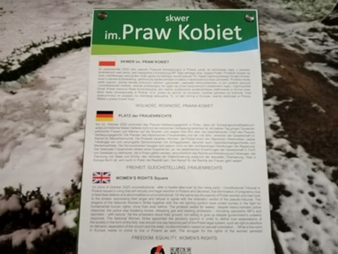 – Skwerowi im. Kaczyńskiego nadaliśmy nazwę im. Praw Kobiet. Tabliczki zostały naklejone, zmieniliśmy także galerię informacyjną. Tuż obok znajduje się plac Solidarności, na którym odbywają się wszelkie protesty związane z prawami kobiet, a z drugiej strony Lech Kaczyński był założycielem partii, która przydusza kobiety i dyskutuje nad prawami człowieka – mówi nam anonimowo jedna z inicjatorek akcji.