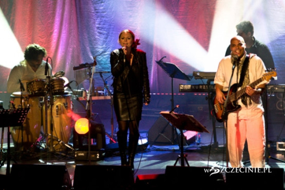 Warto niewątpliwie odnotować, że oprawa wizualna koncertu była bardzo dobrze zestrojona z muzyką. Kolorowe światła wspomagały wrażenia słuchowe, a cała scena mieniła się przyjaznymi barwami. Wykonana w niebieskiej tonacji „Smuga cienia” była moim zdaniem jednym z najbardziej poruszających momentów całego występu. Poza tym wymieniłbym jeszcze gorące, pulsujące rytmem wykonani „Sodade”(ze znakomitym solem perkusyjnym) a także intrygującą wersję „Spójrz, przeminęło”, którą przedstawił... duet gitarowy Marek Napiórkowski – Anna Maria Jopek. Podczas tego radosnego muzykowania artystka wyśpiewała nie tylko tekst utworu, ale również nazwiska towarzyszących jej instrumentalistów. Kiedy wszyscy pojawili się na scenie usłyszeliśmy piosenkę „Lizbona, Rio, Hawana” i część widzów zaczęła już opuszczać halę...