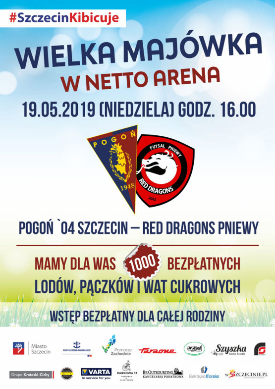 Początek meczu Pogoni 04 Szczecin z Red Dragons Pniewy w niedzielę 19 maja o godzinie 16:00 w hali Netto Arena przy ul. Szafera 3/5/7 w Szczecinie.