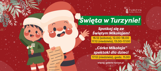 W przedświąteczny, handlowy weekend Galeria Turzyn zaprasza wszystkie dzieci, które już nie mogą doczekać się świąt! W sobotę, 16 grudnia, w godz. 12.00-18.00 oraz w niedzielę, 17 grudnia, od 13.00 do 17.00 na poziomie 0, tuż obok sklepu Hebe, będzie na nie czekał święty Mikołaj. Maluchy będą mogły powiedzieć Mikołajowi, co chciałyby dostać w prezencie, a także zrobić sobie z nim pamiątkowe zdjęcie. Co więcej, Mikołajowi będą towarzyszyły elfy, które z pewnością będą częstowały słodkościami.