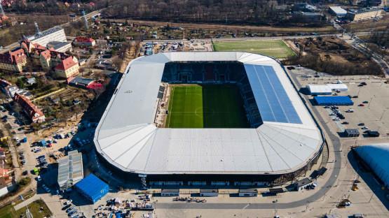 „Kolor dachu Stadionu Miejskiego przedstawiony na wizualizacjach jest szary ponieważ na etapie ich tworzenia zakładano, że wierzchnią warstwą dachu Stadionu będzie gładka membrana. W wyniku optymalizacji kosztów inwestycji na etapie postępowania przetargowego zrezygnowano z membrany. W zamian realizowany jest wariant, którego wierzchnią, widoczną warstwą jest blacha trapezowa. Kolor czarny pozostał obwiązujący od strony wewnętrznej, widocznej z pozycji widza. Kolor dachu jest dobrany w taki sposób aby możliwie sprzyjał trwałości mechanicznej konstrukcji Stadionu i pośrednio umożliwiał utrzymanie sprzyjających warunków termicznych na trybunach” – napisano w przesłanym do mediów oświadczeniu.