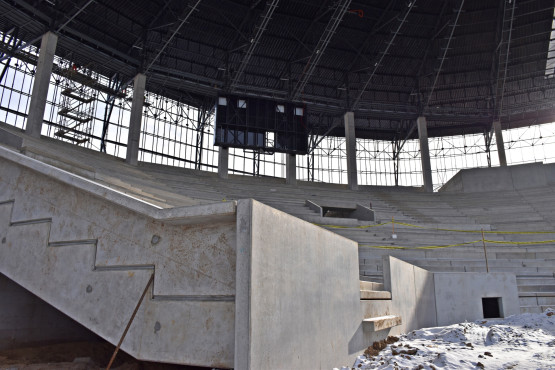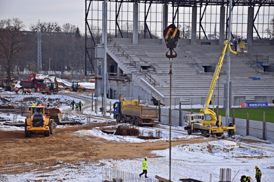 Na stadionie wciąż trwają prace związane z budową dwóch brakujących trybun. Powstają fundamenty trybuny północnej (w miejscu dawnej trybuny niskiej), a na trybunie wschodniej (od strony ul. Twardowskiego) zakończono układanie prefabrykatów dolnych rzędów trybun.