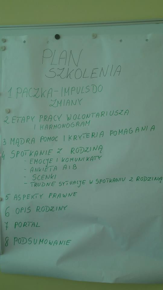 35 wolontariuszy wzięło udział w 7-godzinnym szkoleniu. Uczestnicy, którzy pojawili się na sobotnim spotkaniu reprezentują trzy regiony: Szczecin Śródmieście, Szczecin Prawobrzeże i Gryfino. Szkolenie opierało się głównie na przygotowaniu do odwiedzenia rodziny. Trenerzy przekazali wszelkie niezbędne informacje na temat pracy wolontariusza.