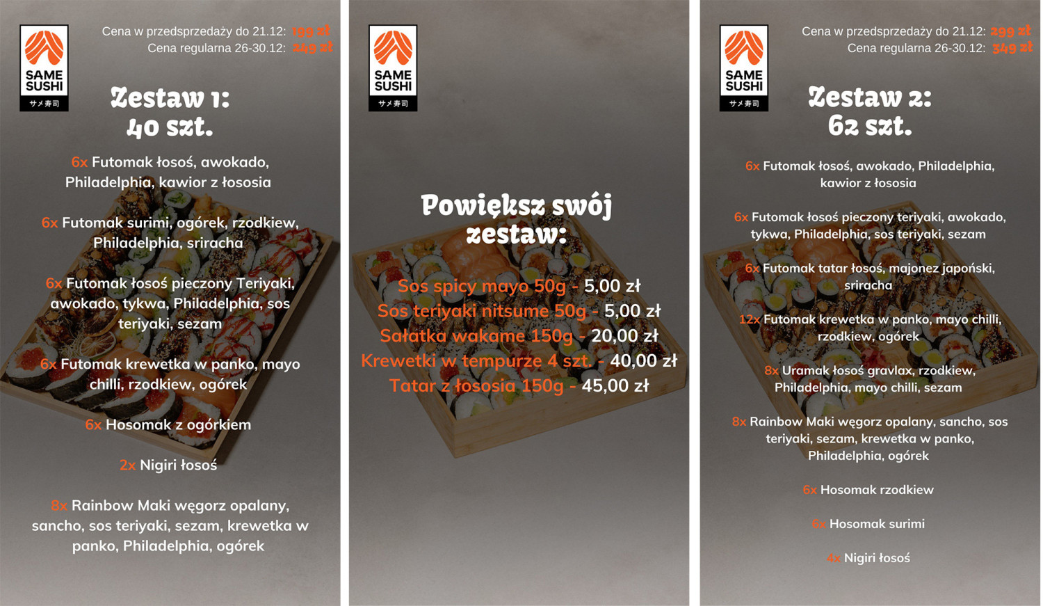 Dla spragnionych sushi przed Sylwestrem Same Sushi ma jeszcze dwa zestawy, które w restauracji i zamówieniach będą dostępne jeszcze tylko do 30.12:
