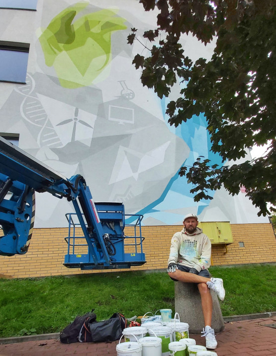 Mural namalował szczeciński artysta Maciej „Kreda” Jurkiewicz, który jest absolwentem Wydziału Architektury dawnej Politechniki Szczecińskiej.
