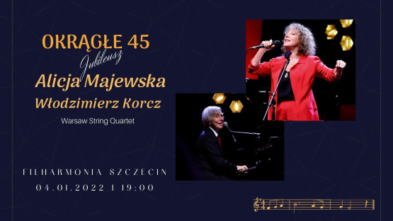 Alicja Majewska i Włodzimierz Korcz również mają co świętować – „Okrągły Jubileusz - 45 lat wspólnie na scenie”. Ten wyjątkowy okres to niezliczona liczba kompozycji napisanych przez Włodzimierza Korcza, a zaśpiewanych przez Alicję Majewską. Podczas koncertu będzie można usłyszeć największe przeboje artystki: „Żagiel”, „Być kobietą”, „Żyć się chce” czy „07 zgłoś się”. Na widzów czekać będzie również wiele ciekawych historyjek o wspólnej pracy duetu, a akompaniować będzie kwartet smyczkowy Warsaw String Quartet.