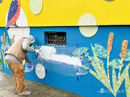 Najnowszą szczecińską mozaikę można oglądać na elewacji bloku przy ul. Wyszyńskiego 36-38. Powstała raptem w niecałe dwa tygodnie, a w jej tworzeniu uczestniczyło blisko 20 osób – mieszkańcy Szczecina, członkowie Młodzieżowego Strajku Klimatycznego, Stowarzyszenia „Oswajanie Miasta” oraz Towarzystwa Krajoznawczego „Krajobraz”.