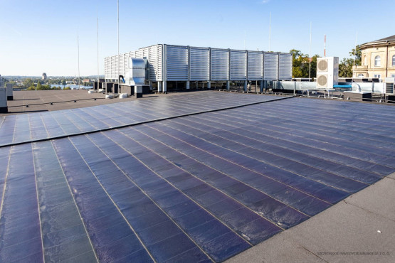 Odrestaurowana elewacja i papa fotowoltaiczna