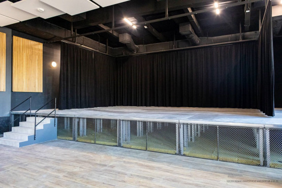 – Dzięki zamontowanej ściance akustycznej ma możliwość podziału na dwa osobne pomieszczenia. Wykonana została nowa scena, zainstalowano także ustroje akustyczne. Obiekt posiada wyciszoną salę prób, salę konfekcyjną, zaplecze dla artystów oraz pomieszczenia gdzie mieścić się będzie zaplecze gastronomiczne. Przygotowane zostały również pomieszczenia biurowe. Dla gości dostępne są toalety oraz pomieszczenie matki z dzieckiem. Przebudowano klatki schodowe. Do obsługi obiektu zakupiony został schodołaz [nie zrealizowano pierwotnego pomysłu budowy zewnętrznej windy – red.] – informuje Piotr Zieliński, rzecznik prasowy miasta ds. inwestycji.