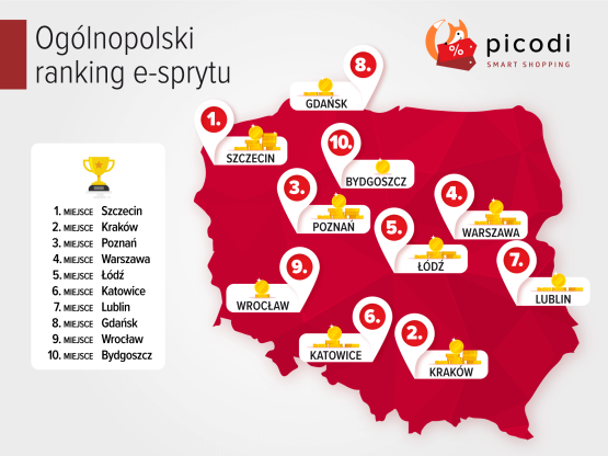 Szczecin zwyciężył w dwóch ostatnich kategoriach. Jak wynika z badania, blisko siedmiu na dziesięciu mieszkańców aktywnie poszukuje zniżek i specjalnych okazji. Co prawda szczecinianie nie wydają w sieci dużo (co najwyżej 300 zł), ale lubią obniżać ceny i korzystać z szerokiego wachlarza promocji. Są również wyjątkowo ostrożni - tylko co dziesiąty składa zamówienie bez zastanowienia, podczas gdy aż 90% dokładnie przeczesuje internet w poszukiwaniu najtańszej możliwej oferty.