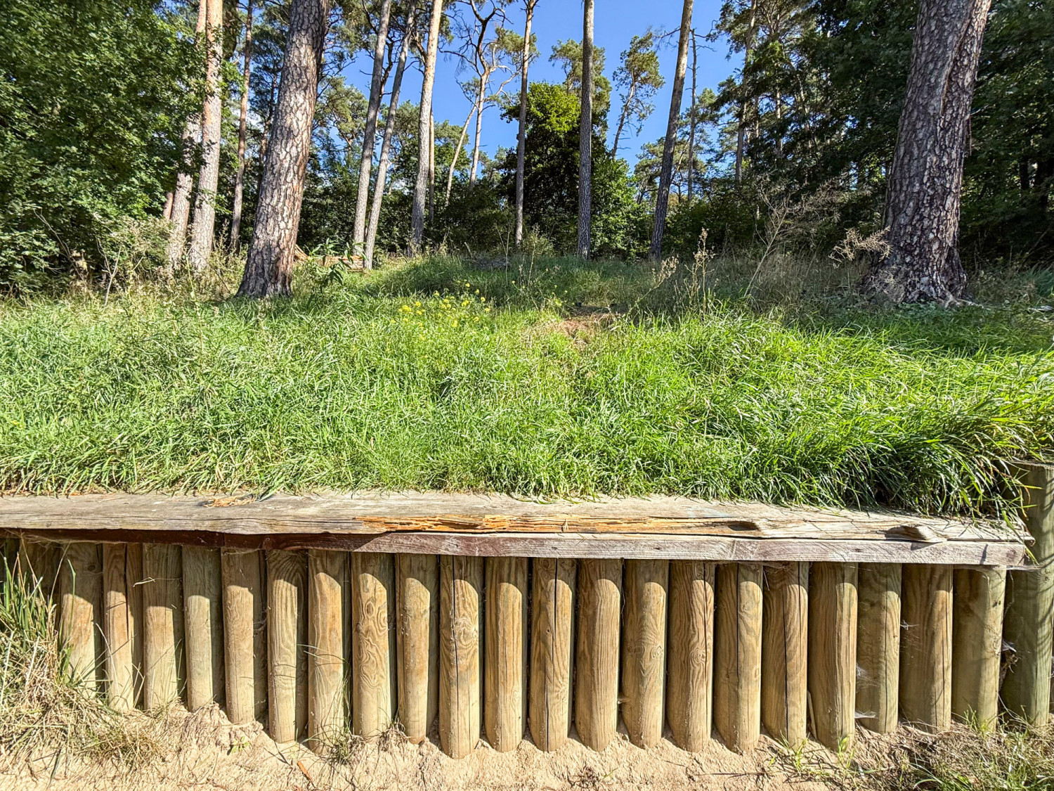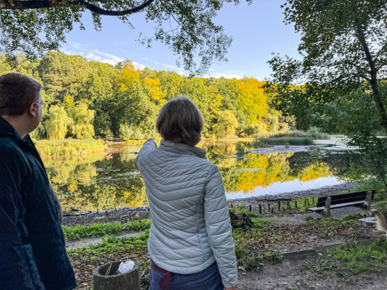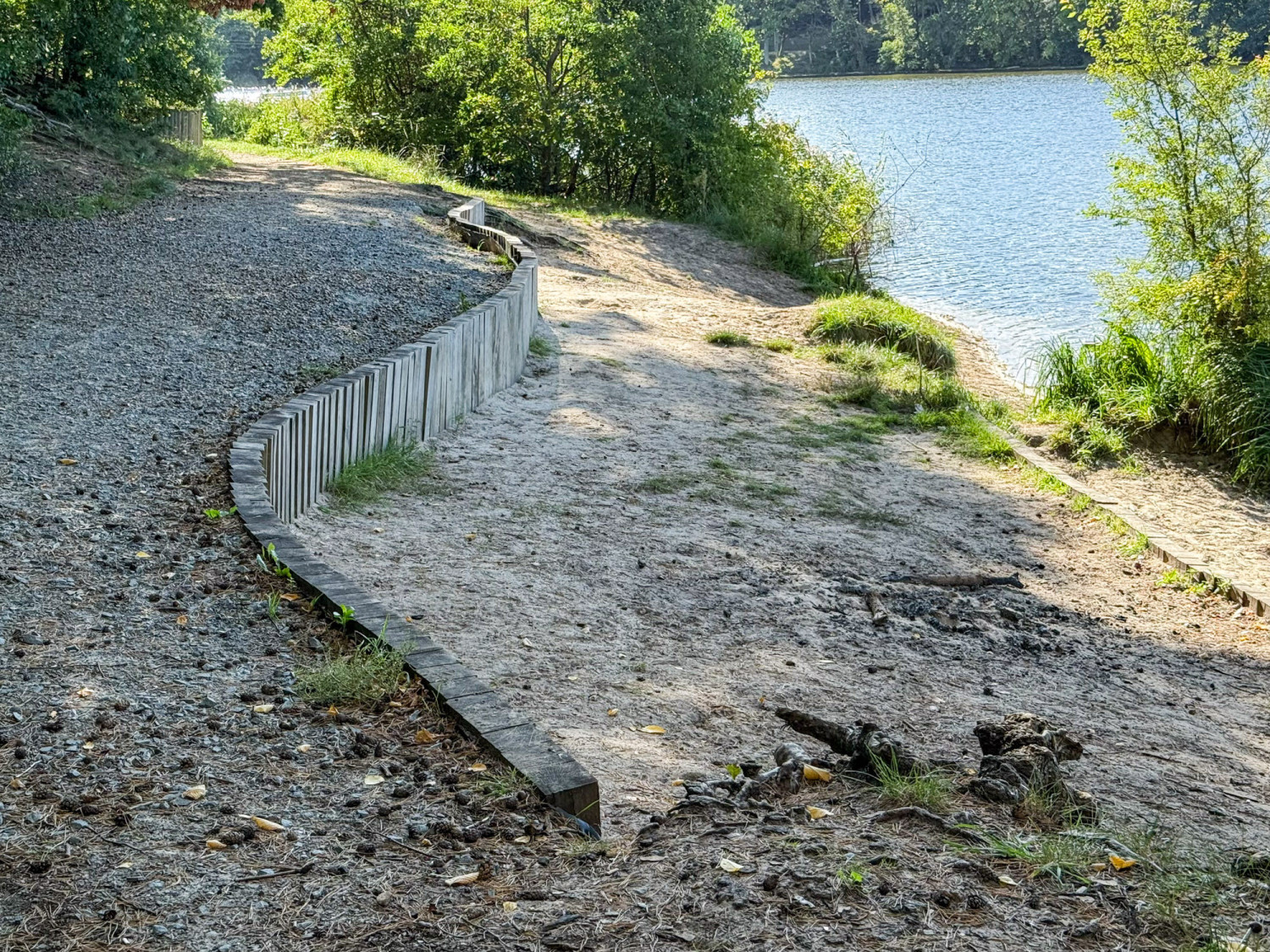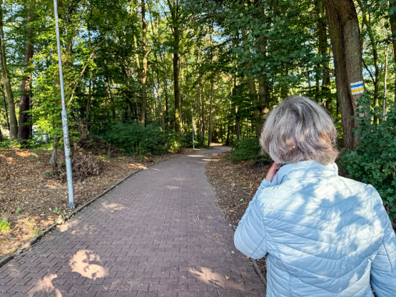 – Dlatego tę ścieżkę trzeba regularnie umacniać – podkreśla wieloletnia radna osiedlowa, pokazując jak załatano wyrwy, wbijając pale w miejscu osuwającego się brzegu. – Nie możemy tej trasy wyasfaltować jak tej wokół Arkonki. Musi zachować leśny charakter, ale jednocześnie trzeba o nią dbać. Również dlatego, że to jedyny dojazd techniczny dla służb.