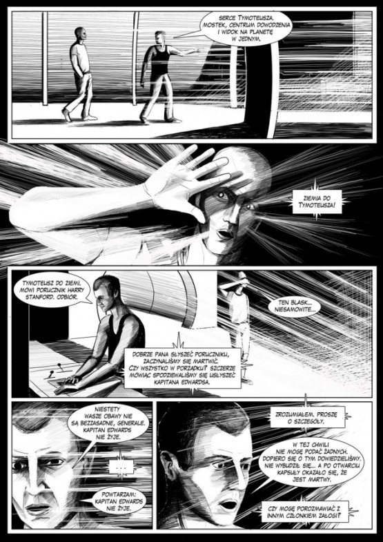 Na czarno-białych stronach „wybranych” poznamy historię astronautów, którzy dwa lata wcześniej wyruszyli w misję, której celem była odkryta planeta. Po dwuletniej hibernacji okazuje się, że ich dowódca nie żyje, a wśród załogi „Tymoteusza” musi być sabotażysta. Co się dzieje na pokładzie? I jaki wpływ na uczestników wyprawy ma nowa planeta? Tego wraz z bohaterami będą próbowali dowiedzieć się czytelnicy, którzy na razie pozytywnie przyjęli szczeciński debiut.
