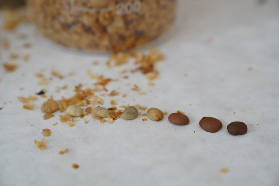 O wykorzystanie łusek ziaren kawy po wypalaniu zwróciła się do naukowców jedna ze szczecińskich palarni. To niezwykle delikatny, lekki i tłustawy odpad, do którego badacze z zespołu profesor Katarzyny Wilpiszewskiej dodali spoiwo (parafinę, wosk sojowy lub pszczeli), a całość sprasowali w podwyższonej temperaturze.
