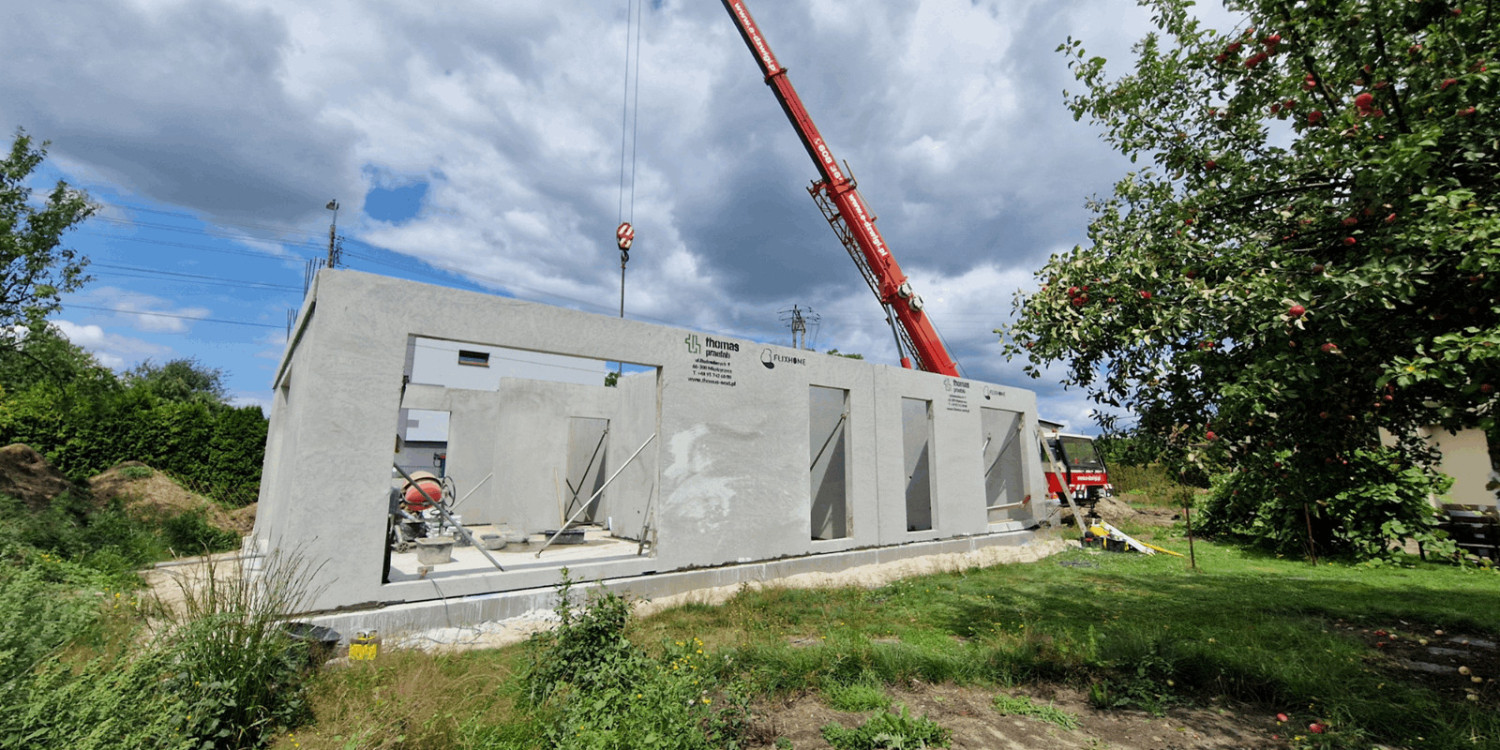 Domy powstają z przygotowanych w fabryce elementów żelbetowych. Są gotowe do szybkiego montażu, nawet już z otworami na poprowadzenie wszystkich niezbędnych instalacji. Klient decydujący się na taki dom jest od początku pewny ceny, która na pewno nie wzrośnie wraz z drożejącymi materiałami. Ma też gwarancję terminu, w którym wykonane zostaną wszystkie prace.