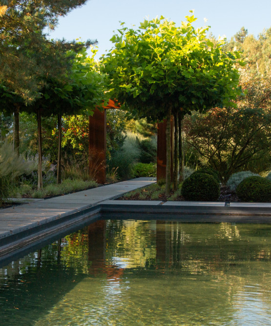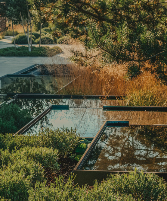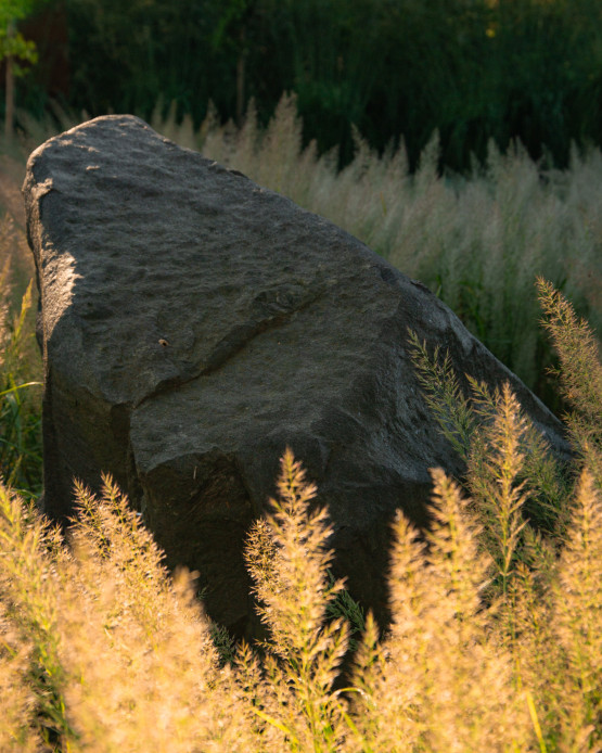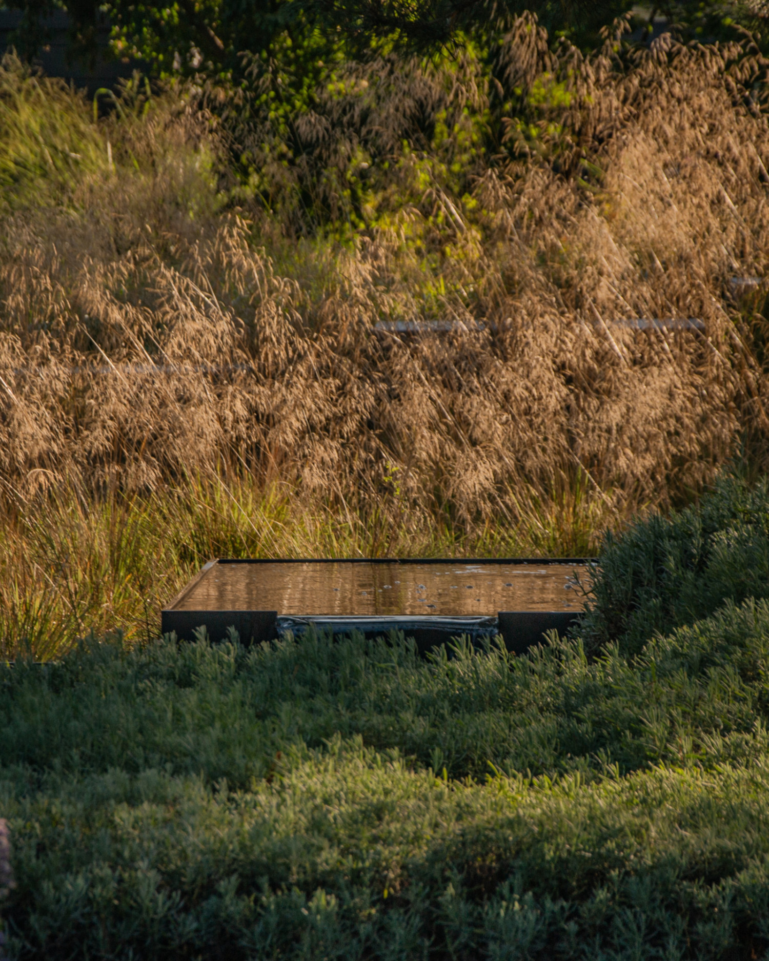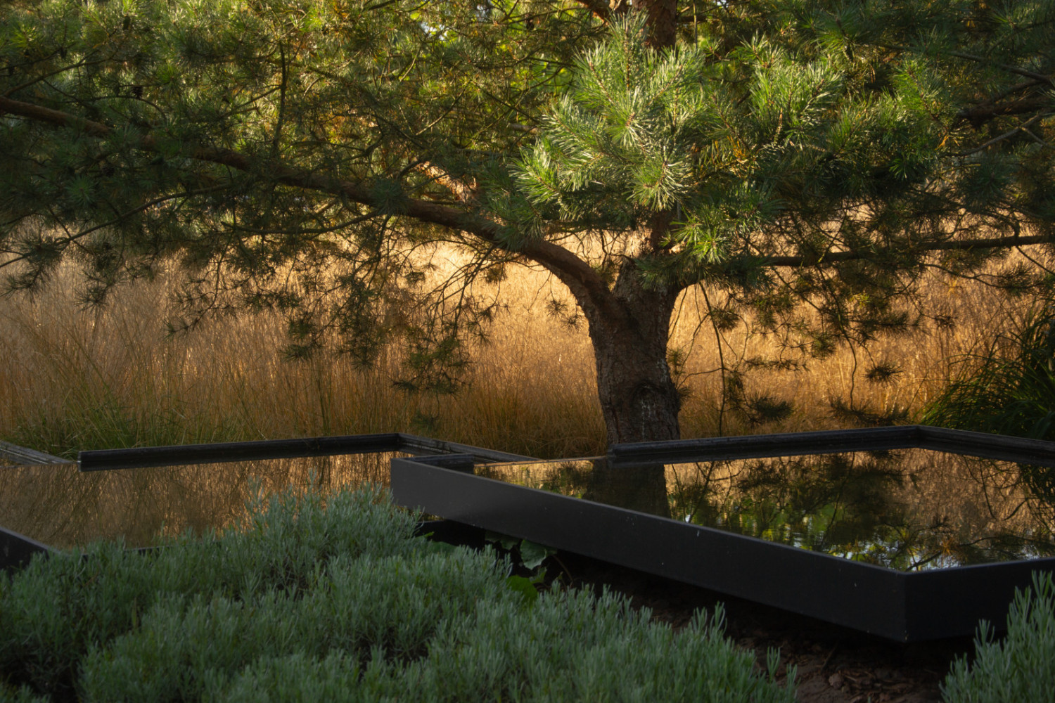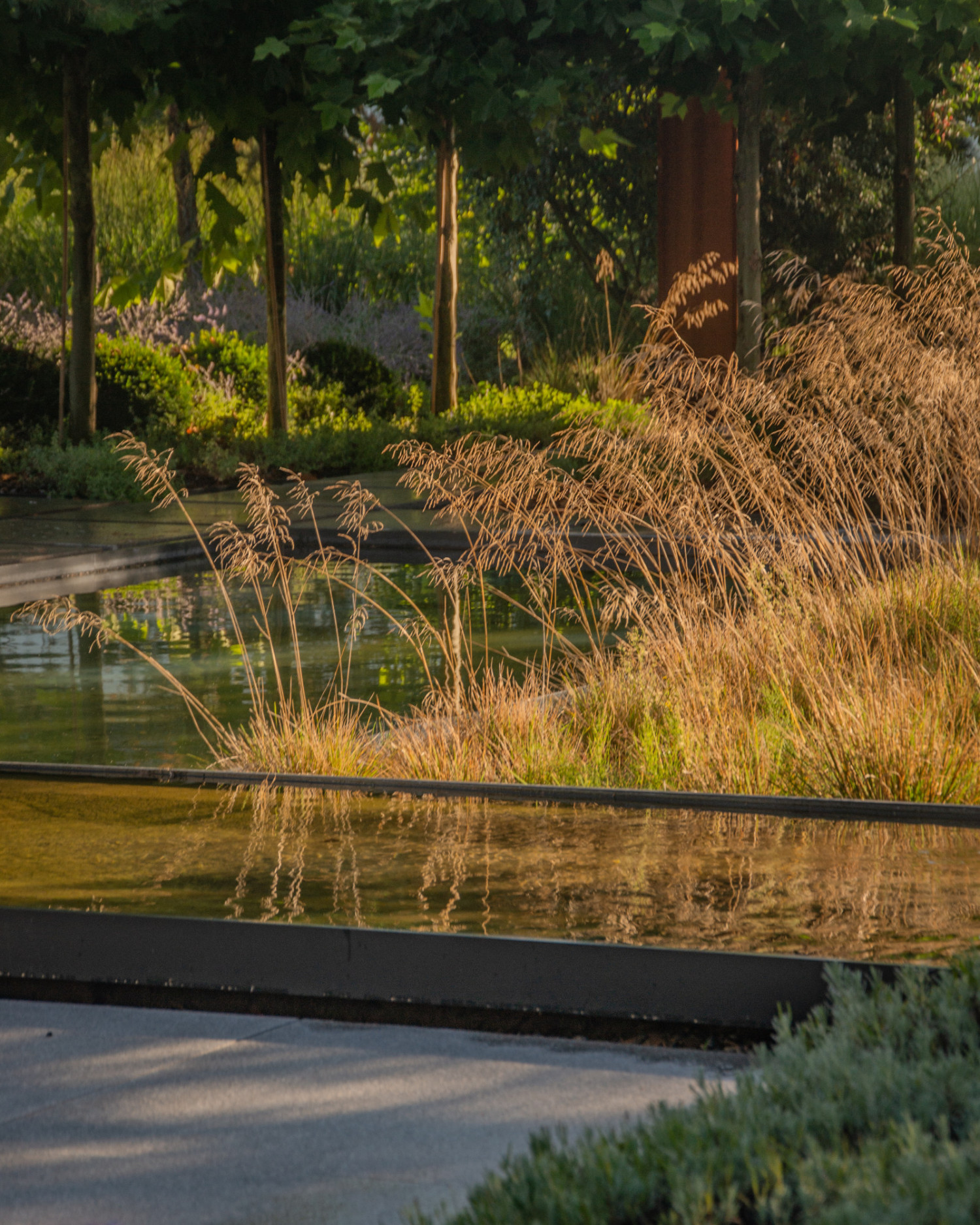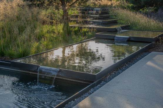 Inspiracją dla projektu były wąwozy Puszczy Bukowej i Lasu Arkońskiego, którymi płyną strumienie. W ogrodzie nawiązuje do nich potok zamknięty w kaskadach.