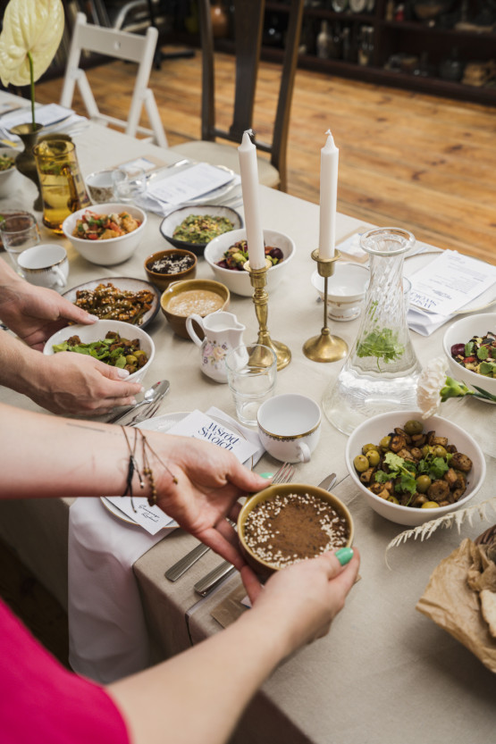 Magda przygotowała również pastę z zielonego groszku, szczawiu, świeżej mięty i bazylii, a także hummus z bobu, pasztet z orzechów włoskich czy sałatkę z piklowaną cebulą, rukolą, śliwkami i parmezanem.