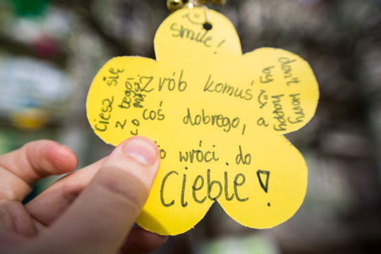 - Wielu z nas jest przygnębionych szarą codziennością, żyjemy w pędzie, wszystko nam przemyka przez palce - mówi Zuzanna Jankiewicz, właścicielka Zakręconej Kawiarenki. - Chciałabym, aby każdy, kto będzie tędy przechodził, zatrzymał się na chwilę, przeczytał coś miłego i się uśmiechnął, bo wiem, że ten uśmiech przekaże dalej! Goście naszej pracowni już na wieść o akcji się uśmiechają. Nawet nie muszą nic mówić, bo w ich oczach pojawia się błysk radości i widać z jakim zaangażowaniem zapisują coś na kolorowych kwiatkach. To pokazuje, jak dzielenie się dobrym słowem potrafi cieszyć nas samych.