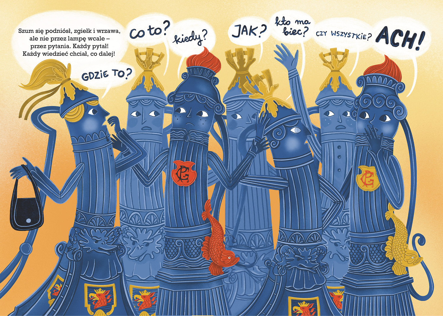 I tak powstała historia o symbolu Szczecina. Pani Pompa ma ponad trzy metry wysokości, waży niemal czterysta kilogramów. A co więcej – nie jest sama. Ma kilkadziesiąt koleżanek, innych Pań Pomp. Wszystkie, ubrane w niebieskie sukienki, stoją w różnych częściach miasta. W dzień wydają się zupełnie zwyczajne: nieruchome, ciche, może nawet trochę zapomniane. Ale nocą dzieje się coś niezwykłego. Panie Pompy… ożywają. Są tam, gdzie trzeba, i zawsze na czas.