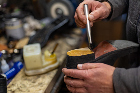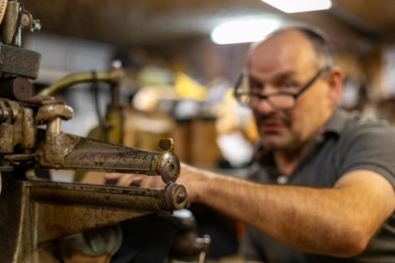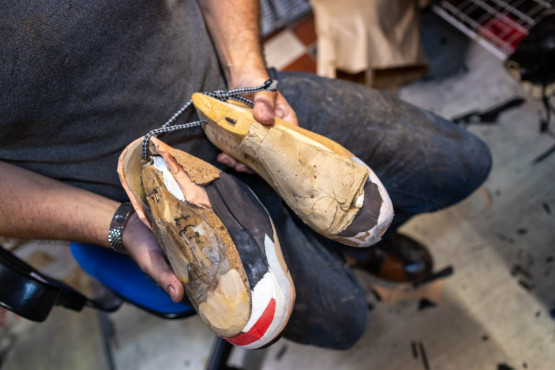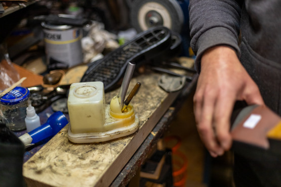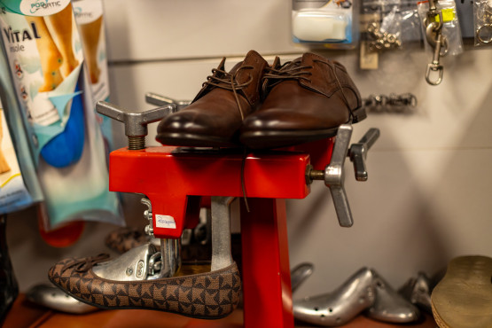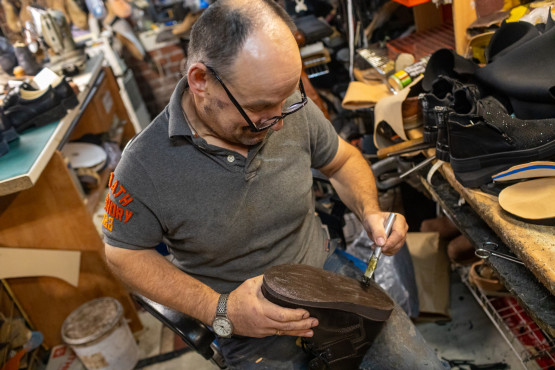 Na półce „z naprawami” stoją błyszczące buty obszyte cekinami, dalej buty z pierścionkiem „z diamentem” osadzonym na szpilce, które trzeba podzelować („ulepszamy producenta”). Pantofelkowi ze „szklanym” obcasem potrzeba przykleić flek do przezroczystego plastiku. – Każdy but jest innym zadaniem, w każdej sztuce trzeba praktycznie coś innego zrobić. W tej pracy nie ma monotonii – tłumaczy Piotr Łaszcz, właściciel firmy. – Zawsze marzyłem, żeby robić buty. Tworzy się coś innego niż fabrycznie.