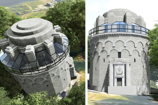 Górny taras Wieży Bismarcka zostanie oszklony? Internauci zachwyceni, Miejski Konserwator Zabytków niezbyt [wizualizacje]