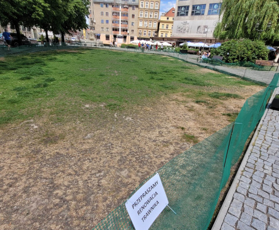 Pół zielony, pół wysuszony. Trawnik na placu Orła Białego wymaga rewitalizacji