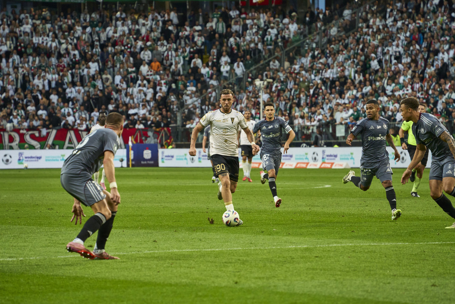 Mecz z Legią Warszawa rozpoczął się od faulu na skraju pola karnego, którego dopuścił się Musa Juwara. Strzał z 11 metrów na bramkę zamienił Mileta Rajović. Pogoń Szczecin, zagrała z Legią w eksperymentalnym składzie. W środku obrony pojawił się Dimitrios Keramitsis. Na lewej obronie natomiast, wystąpił świeżo sprowadzony prawy obrońca, Hussein Ali. Rolę defensywnego pomocnika pełnił Mor Ndiaye. To część składu, jaki do grania desygnował tymczasowy szkoleniowiec granatowo-bordowych Tomasz Grzegorczyk. Z trybun, starcie Legii z Pogonią, obserwował już potencjalny nowy trener Pogoni Szczecin - Thomas Thomasberg. Duńczyk pracował poprzednio w FC Midtjylland i zbierał tam bardzo dobre noty.