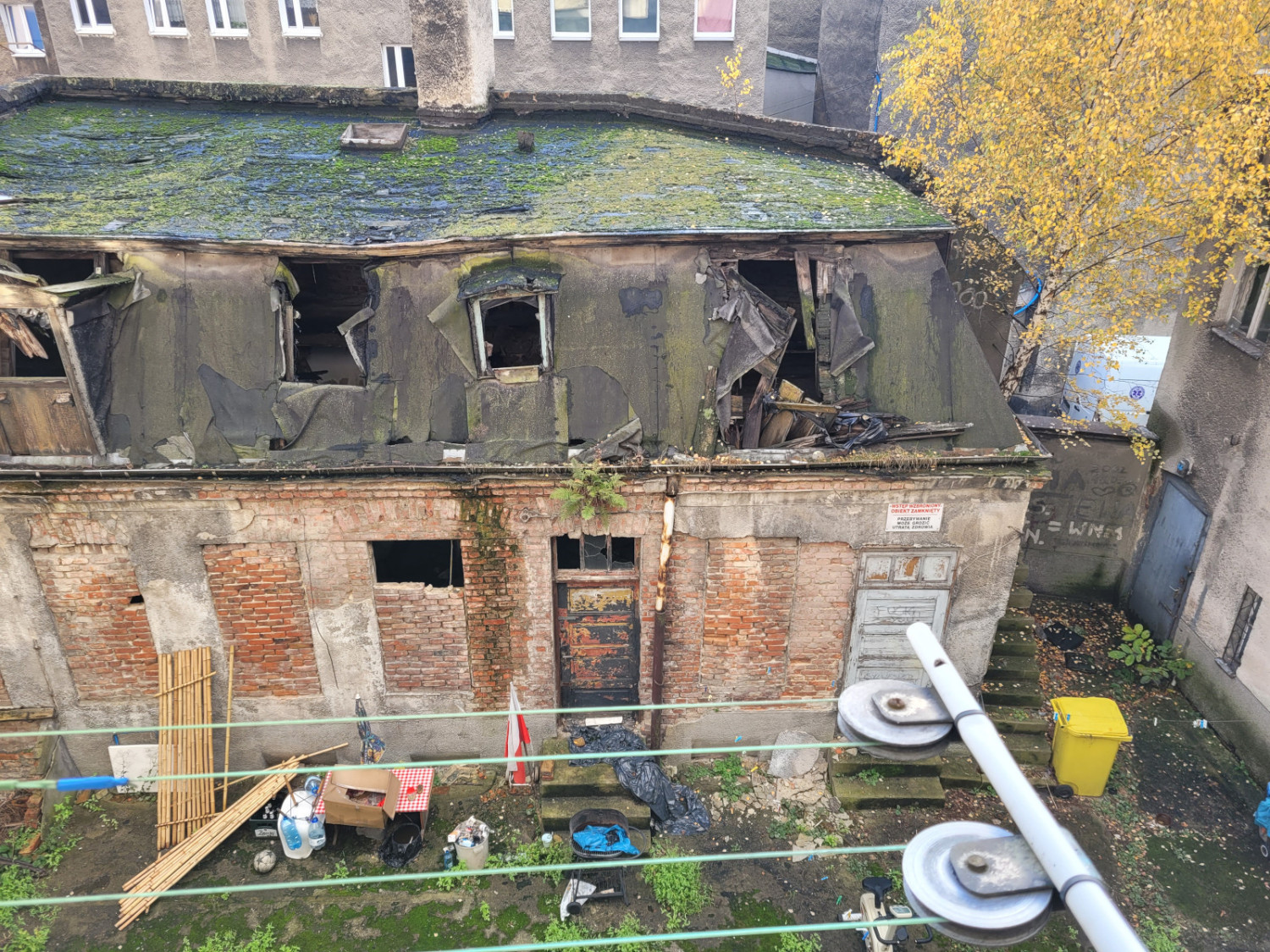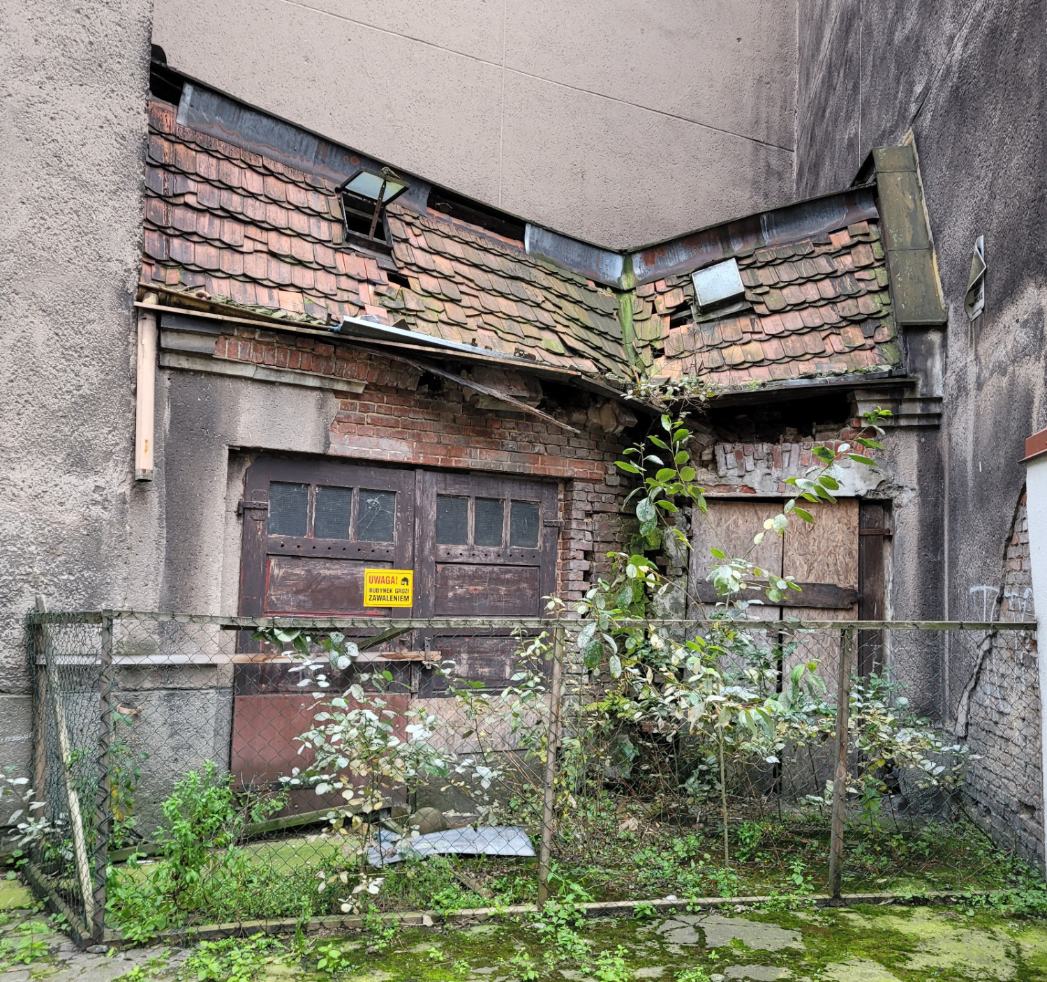 Stwarza zagrożenie dla mieszkańców ze względu na groźbę zawalenia – to już opis parterowego budynku z użytkowym poddaszem na podwórku budynku przy ul. Piłsudskiego 24B.