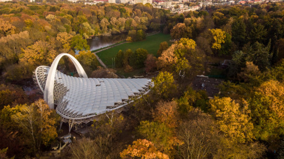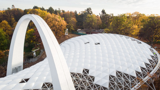 Stalową konstrukcję tworzy 2,5 tys. elementów o łącznej masie 400 ton. Rozpiętość dachu to 90 na 57 metrów, natomiast jego powierzchnia wynosi ponad 4200 m kw.