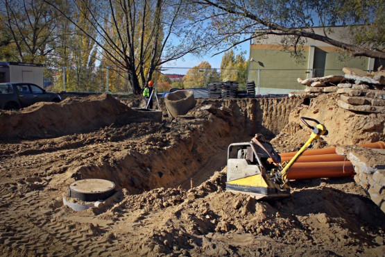 Prace budowlane rozpoczęły się dokładnie miesiąc temu od przygotowania terenu pod budowę parkingu przy Szkole Podstawowej nr 35. Jak informuje Piotr Zieliński z Urzędu Miasta, wykonawca zrealizował już większość prac związanych z instalacjami podziemnymi i kanalizacją. Na części terenu widać też pierwsze warstwy podbudowy pod plac parkingowy.