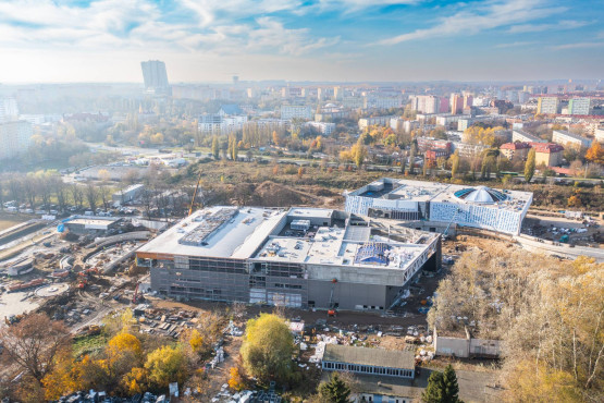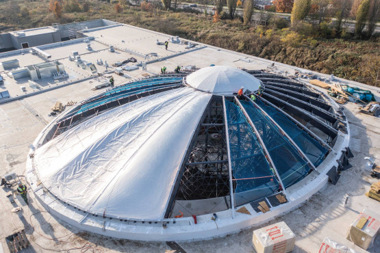 – Co istotne, na obu budynkach widoczne są zastosowane nowoczesne rozwiązania architektoniczne. W części budynku Aquaparkowego zainstalowane zostały świetliki tubowe. Z kolei na budynku edukatorium prowadzony jest montaż świetlika z membrany ETFE. Oba rozwiązania służą temu, aby do wnętrza budynku przedostawało się jak najwięcej naturalnego światła słonecznego – podkreśla Piotr Zieliński.