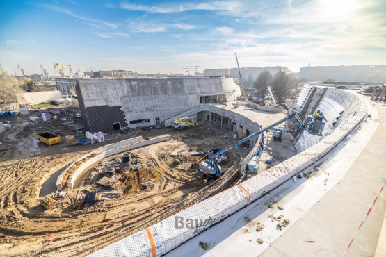 – Kontynuowane są prace zbrojarskie i ciesielskie. Wykonywane są ściany działowe. Trwa wieszanie zewnętrznych fasad. Montowane jest okablowanie, oprawy oświetleniowe, wykonywana jest wentylacja, prowadzony jest montaż instalacji wodociągowej hydrantowej. Trwa również montaż elementów konstrukcyjnych niecki basenu rekreacyjnego – informuje Piotr Zieliński, rzecznik prasowy miejskiej spółki Fabryka Wody.