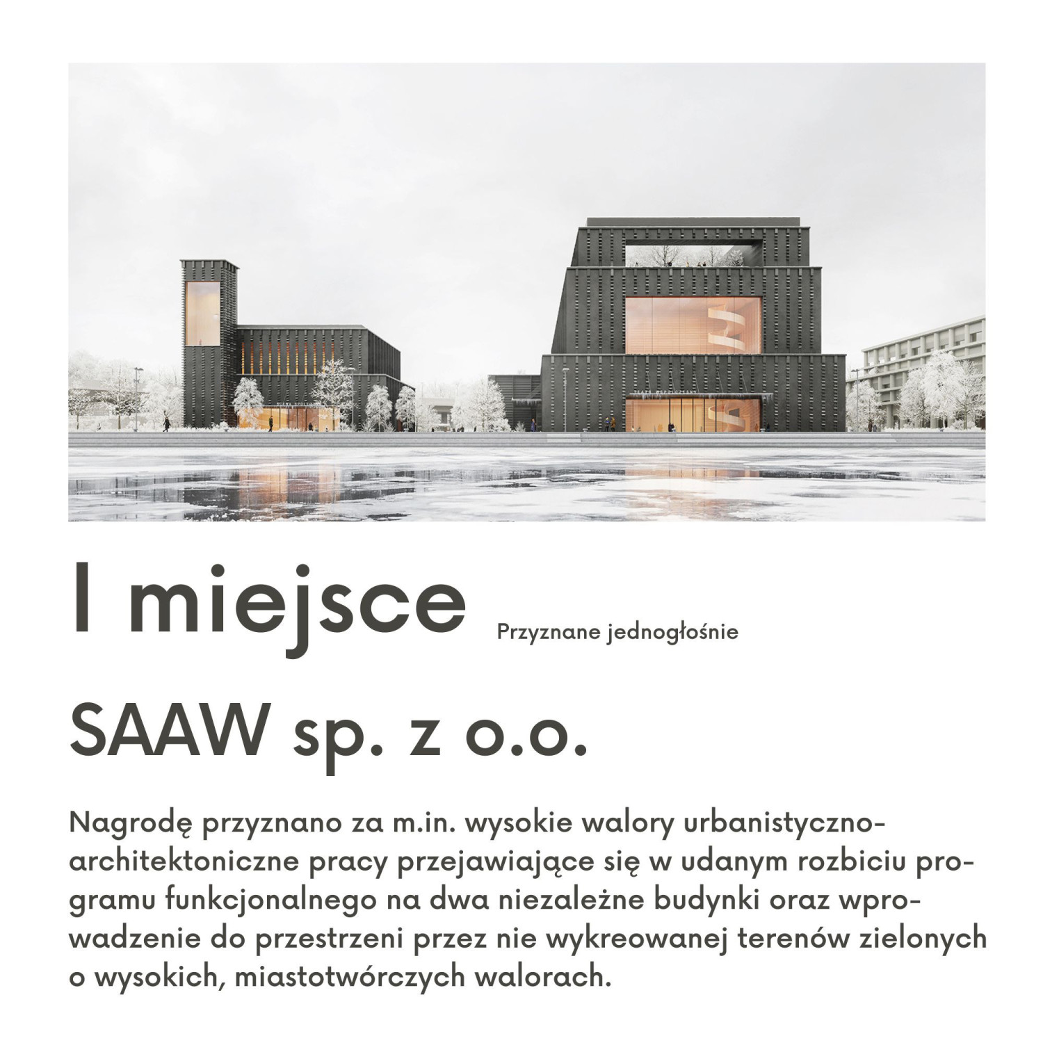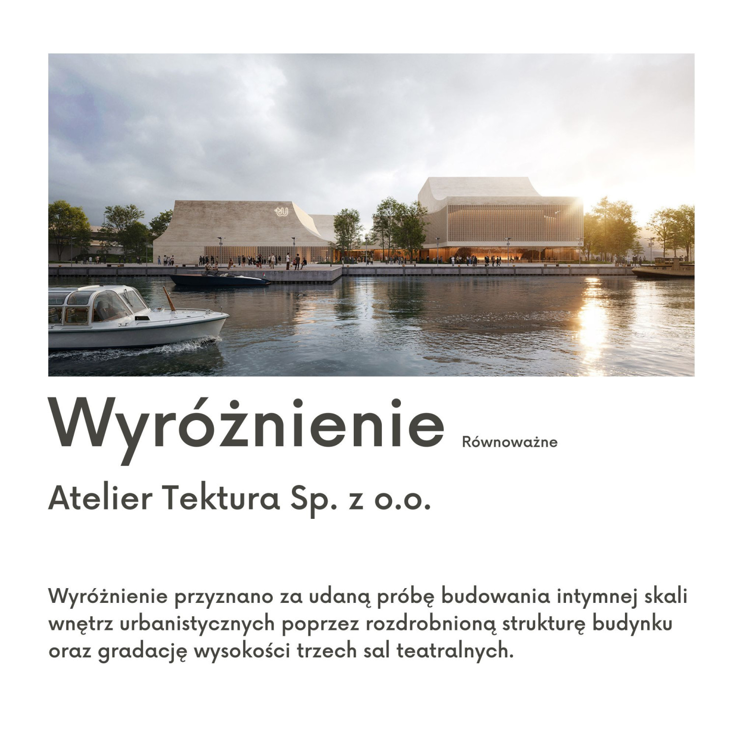- Nowa siedziba Teatru Współczesnego jest dla nas projektem szczególnym - podkreśla prezydent Szczecina Piotr Krzystek. – Łasztownia zmienia się dziś bardzo dynamicznie i staje się nowym frontem miasta nad wodą. Potrzebuje zatem architektury odważnej, ale też mądrej i wrażliwej na kontekst miejsca. Zwycięska koncepcja pokazuje, że można połączyć te elementy – stworzyć budynek, który będzie nowoczesny, otwarty na mieszkańców i jednocześnie będzie symbolem rozwijającego się Szczecina.