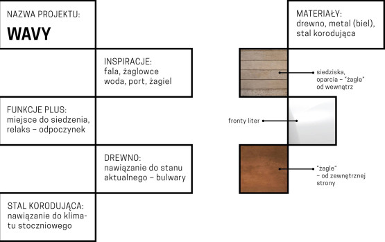 Inicjatorem powstania napisu jest radny Przemysław Słowik: - Inspiracją dla projektu był morski charakter Szczecina, nowe bulwary i sąsiadująca z napisem marina na Wyspie Grodzkiej. Dlatego każda z liter otrzyma swój własny żagiel wykonany ze stali korodującej oraz drewniane podesty, które mogą posłużyć jako ławka. Będzie to nie tylko miejsce do wykonania zdjęcia, ale również relaksu i odpoczynku w bulwarowym klimacie Łasztowni – napisał radny na swoim facebookowym profilu.