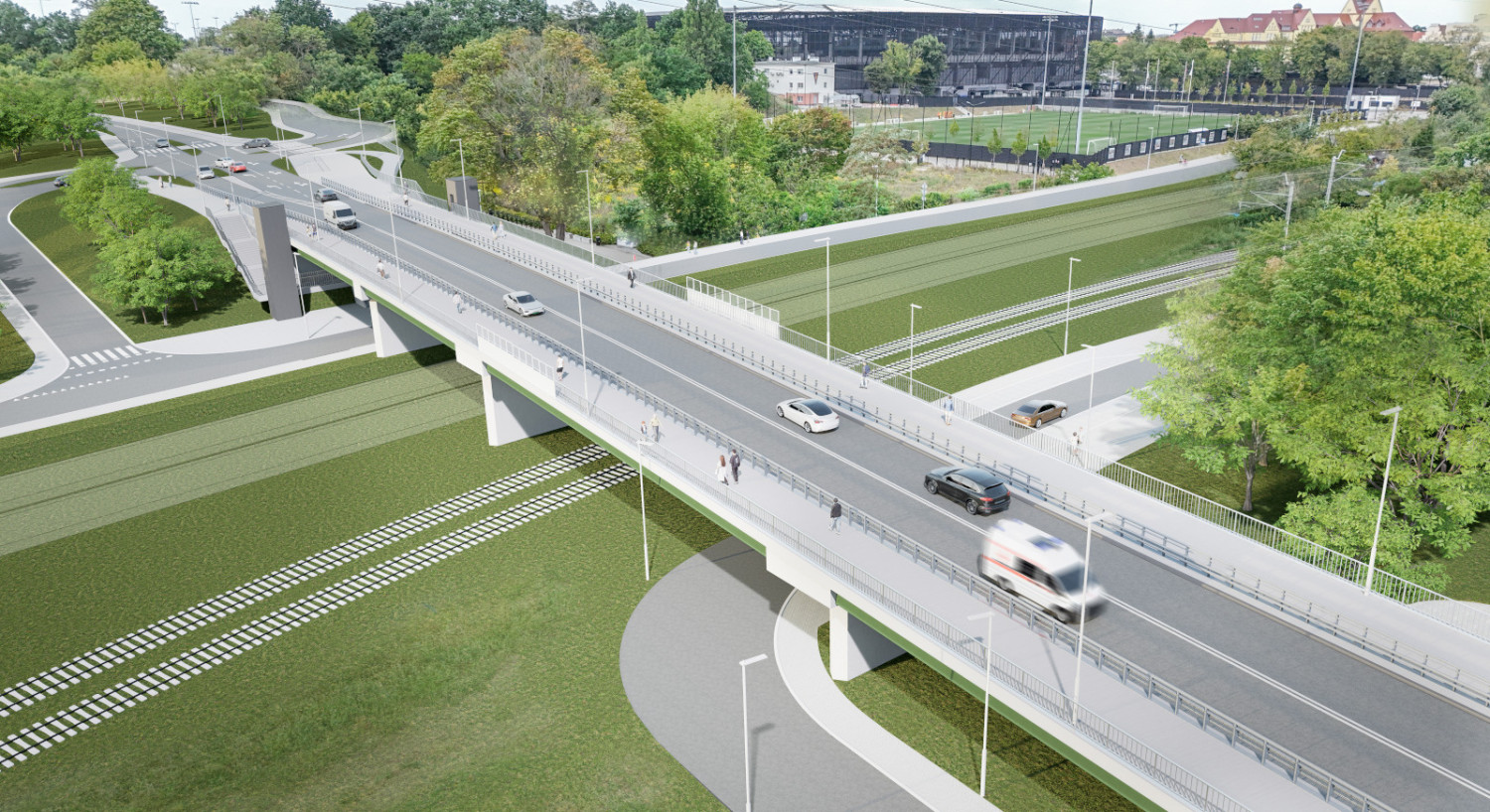 Z poziomu ulicy Stacyjnej będzie wjeżdżać się na wiadukt łącznicami. Na skrzyżowaniu z ul. Letnią zaplanowano rondo. Skrzyżowania z ulicą Miłą i Jesienną zostaną wykonane z drogami wspomagającymi.