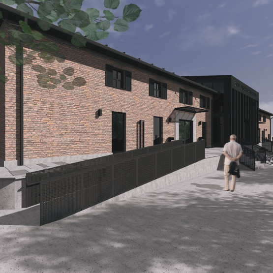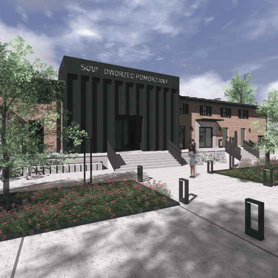 Projekt zakłada renowację historycznego budynku dworca (nie jest wpisany do rejestru zabytków) z zachowaniem jego ceglanej elewacji. Nowoczesnym elementem byłaby dobudowana bryła holu wejściowego. Wokół zaplanowano zieloną przestrzeń z ławkami.