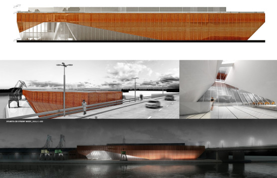 Praca otrzymała wyróżnienie za „dobre warunki ekspozycji i możliwość wglądu z zewnątrz na wystawy i warsztat szkutniczy”. Na elewacji gmachu zaproponowano diody LED, dzięki którym gmach mógłby posłużyć jako tło do iluminacji oraz projektów multimedialnych.
